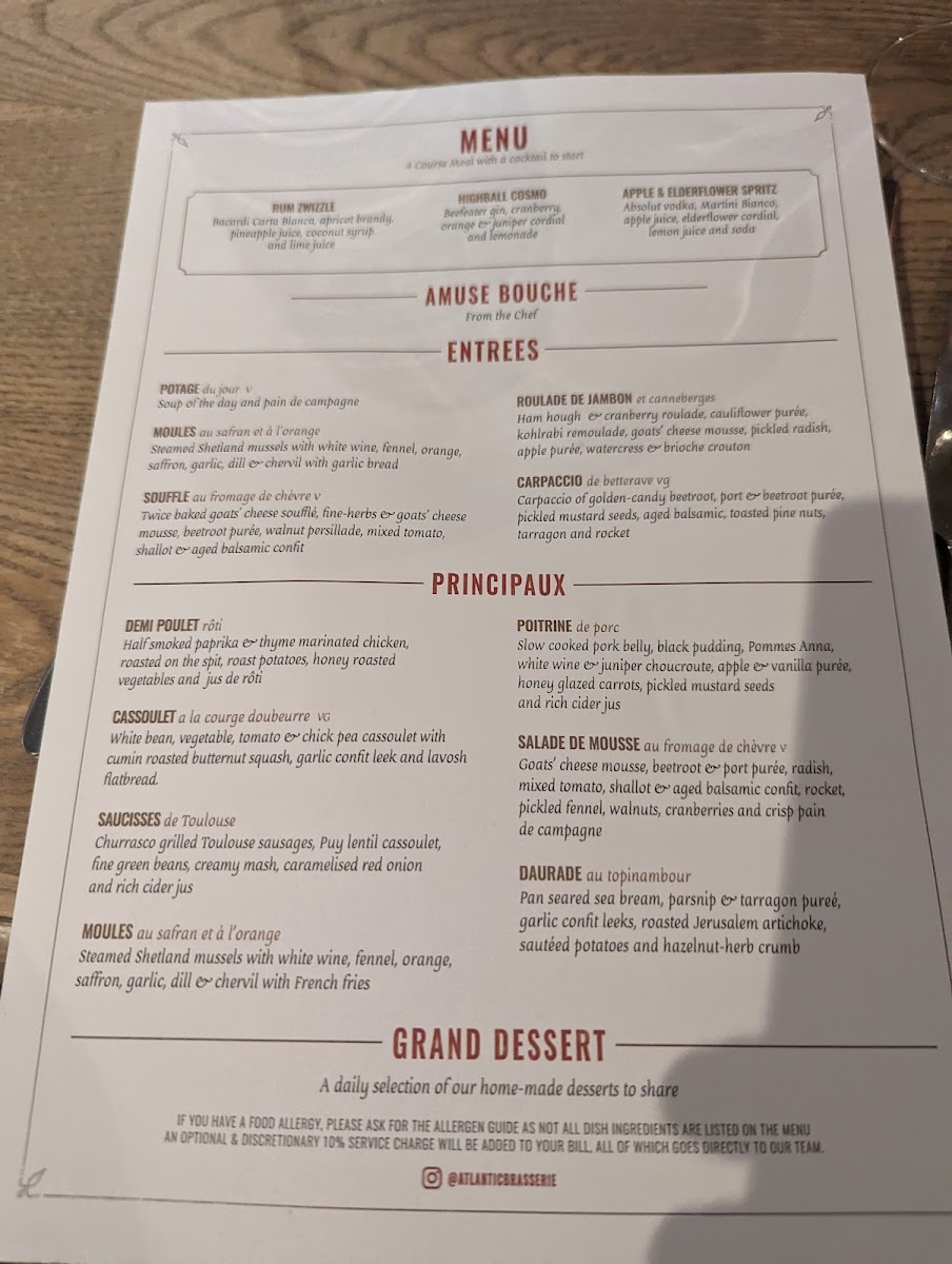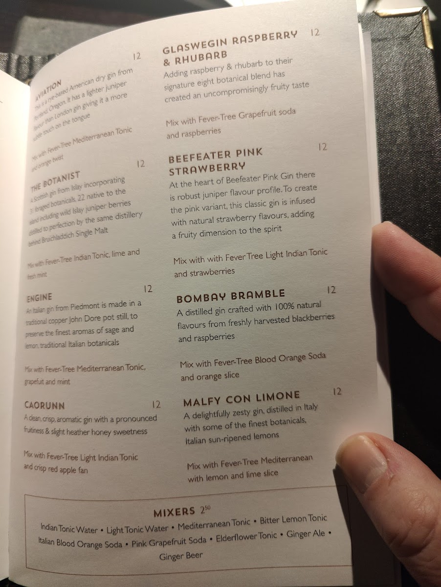 The menu is complemented by a thoughtfully curated drinks list, with a selection of fine wines and cocktails, including their signature gin cocktails, which perfectly pair with any meal.